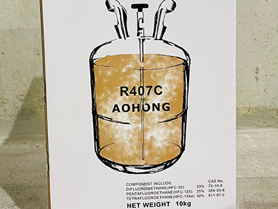 - R-407Cは、空調機や中温度域に使用される冷蔵機器に使用されるR-22の代替冷媒として開発されたR-32、R-125、R-134aの3成分からなる非共沸混合冷媒であり、空調機、チラー、自動販売機などの冷媒として使用されています。